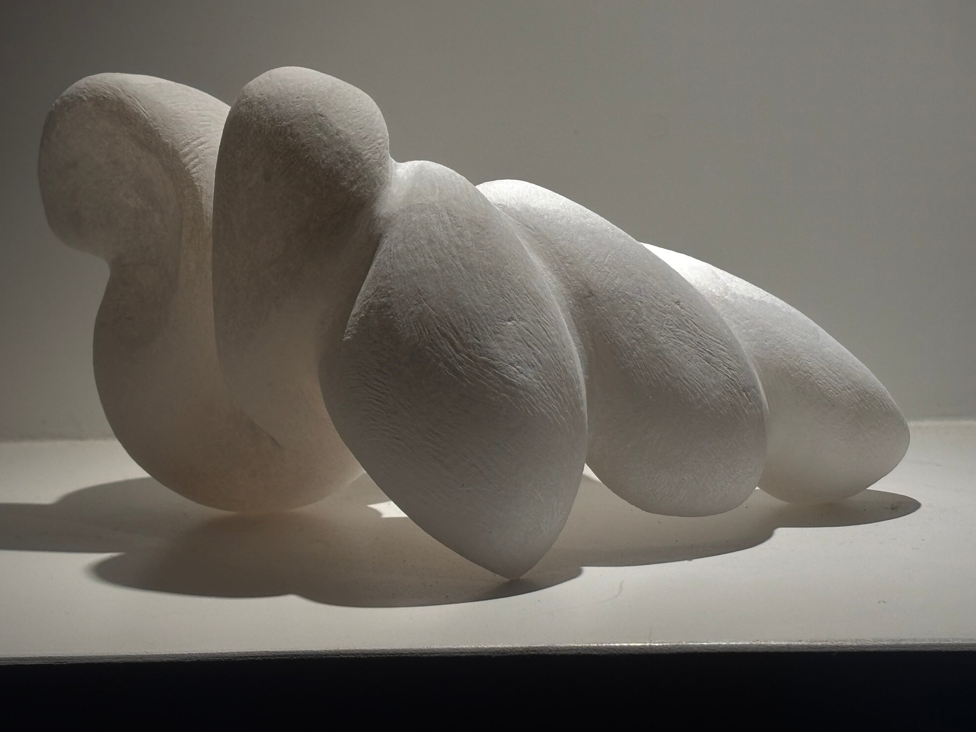 Surrender captures the essence of surrendering to passion and embracing the raw force of creation. Its flowing curves and alabaster surface mimic the dance of ocean waves, frozen in time yet brimming with motion. The sculpture's delicate yet powerful form reflects the duality of nature—soft yet unyielding, calm yet relentless. Every curve whispers a story of letting go, casting aside doubt, and immersing fully in the art of becoming. Like the sea itself, this piece invites viewers to shed inhibitions and drift freely into the depths of creativity.This piece was created during a challenging period for the artist herself and some of her loved ones and helped to let go